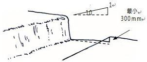 2、擺放格賓網的地基應平整、干燥。墻體的基礎應與地面水平線保持1~10度的夾角,用以防止格賓擋墻滑動,保證墻體穩定性,至少300mm,在墻體的最前端也需如此。格賓網后面的邊坡傾角也應保持在一個安全的角度,以保證邊坡穩定。