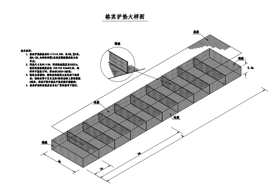雙隔板合金鋼絲護坡技術(shù)參數(shù):