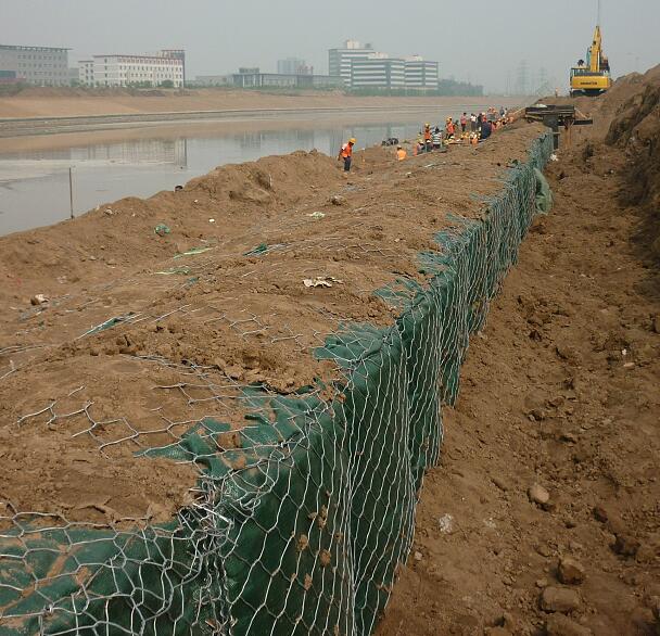 采用重鍍高爾凡方式進行防蝕處理的鋼絲具有較強的耐久性能.格賓網由具有優良防腐性能的鋼絲經過機械編織裝而成,優良的鍍層工藝和編織技術,保證了鍍層厚度的均勻性和抗腐蝕性.由于結構的整體性,以及和自然環境融為整體,所以在鍍層損失的情況下,不影響結構的穩定性.