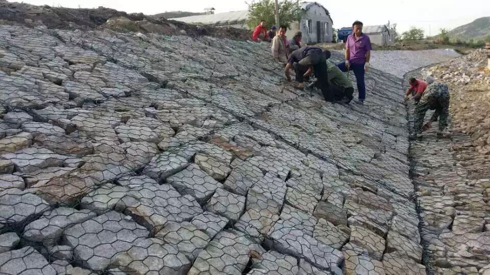 熱鍍鋅石籠格賓是由抗腐耐磨高強的低碳鍍鋅鋼絲編織成雙絞六邊形的金屬網箱,根據工程設計要求組裝并裝入塊石等填充料的一項工程技術,這種蜂巢型結構,最能符合力學的原理,是一個同性質的巨大塊狀結構.體,具有承受張力的功能,并可吸收未知的壓力.這項技術能較好地實現工程結構與生態環境的有機結合,為保護河床,治理滑坡,防治泥石流災害,防止落石兼顧環境保護的首選結構形式