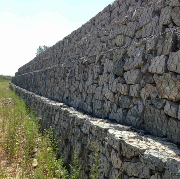 加筋格賓石籠網擋墻是一種將機編六邊形雙絞合蜂巢形金屬網片裁剪后,組裝成箱籠,并裝入塊石等填充料后,用作護岸或護坡的一種新工藝、新技術、新材料,具有很好的整體性、柔軟性、耐久性、施工方便易組合、造價低、防沖刷等優點。因此,可以成為保護河床、治理滑坡、防治泥石流、防止落石兼顧植被綠化、生態環境保護的首選結構形式。