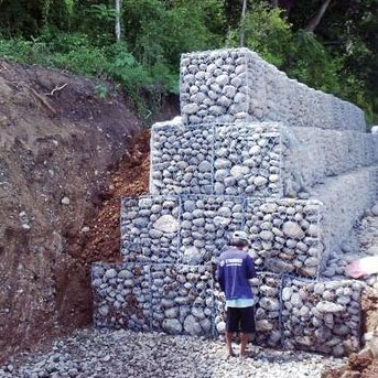 賓格網籠(格賓石籠)是由機編雙絞合六邊形金金屬網面構成的箱形結構,賓格網籠的鋼鋼絲是由厚鍍鋅低碳鋼絲制造而成的.為了提高賓格網籠結構的強度,所有的鋼絲網面板邊端都采用直徑更大的鋼絲,對賓格網籠的鋼絲可進行厚鍍高爾凡處理來提高鋼絲的耐久性.當用于土壤或水呈酸性的污染環境中時,還可對鋼絲采用覆塑等措施進行保護.賓格網籠是由間隔1m的隔板分成若干單元格,賓格網籠即在格賓網里填充石頭,形成了具有柔性,透水性及整體性的結構.