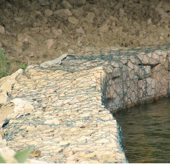 覆塑雷諾護墊為水利工程界最樂于采用的新型柔性防護材料,由直徑在2.0-4.0毫米之間的高上鋅防腐低碳鋼絲采用六角形雙絞合擰邊工藝、一次性成型加工工藝而成的厚度小于長和寬的鋼絲網籠厚度一般在0.17-0.3m之間、網孔在60-120mm之間。外形呈扁平多孔隙結構、穩固性性和防沖刷性更強,對于不均與沉陷自我調整性最佳,廣泛用于治理高速水流、沖刷嚴重及岸邊滲水較為嚴重的堤壩,多孔隙網面結構使其具有很好的透水性和可植被性,岸邊形成的綠色植被綠化環境的同時進一步加強了坡面的穩固性,可謂是一舉多得。