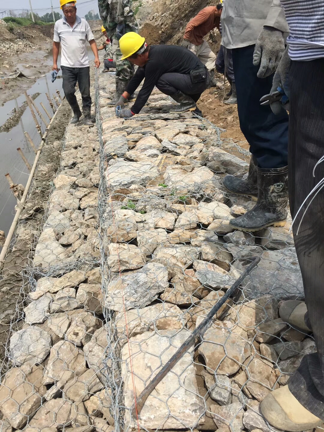 格網石籠工藝是指將特種鋼絲由專用機械編織成雙絞、蜂巢形網目的格網片,根據工程設計要求,裁剪、設計、組裝成箱籠并裝入塊石等填充料后連接成一體的結構,用作提防、路基防護工程.