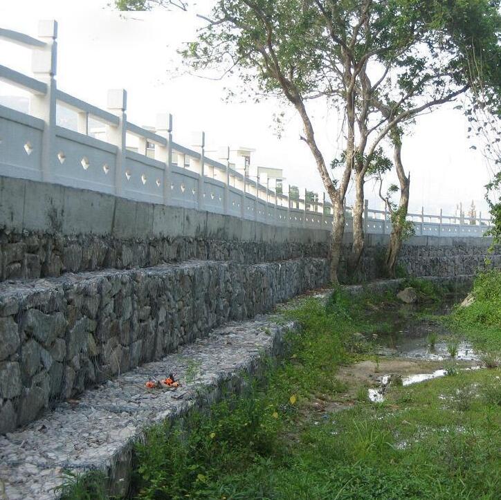 到了現代石籠網、格賓網、鉛絲石籠、雷諾護墊、是使用高耐腐蝕性金屬絲編織而成的網狀矩形網箱,在箱內裝填塊石或天然鵝卵石,鋪在河道里,形成天然屏障,就地取材,不破壞生態環境、因地制宜,更好的治理了水患.而且就有較強的整體性、透水性,抗沖刷性、生態適宜性,有利于自然環境生物的生長,是岸坡環境得到改善.這種生態格賓網結構的應用成為最佳解決方案之一.
