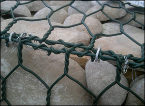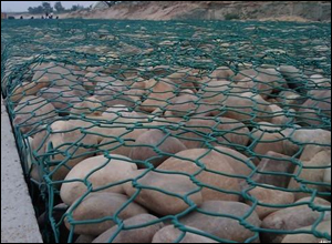綠濱墊是一種采用熱鍍鋅絲或鋅鋁合金鋼絲經(jīng)過重型六角網(wǎng)機器編制而成的六角形網(wǎng)子,編制方式采用的是雙絞合互繞360°三圈或五圈,因此綠濱墊根據(jù)編制方式不同又可以分為三擰綠濱墊和五擰綠濱墊,一般用的最多的為三擰綠濱墊.三擰綠濱墊具有提高河床邊坡的穩(wěn)定性、保護河床堤坡防止沖刷、控制和引導水利方向、施工簡單快捷,造價低等特性,而且使用綠濱墊還可以調(diào)節(jié)生態(tài)平衡、凈化河水、保護自然環(huán)境,讓河道很好的與周圍環(huán)境融為一體,具有觀賞價值.