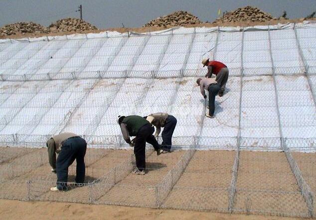 石籠網護墊是將抗腐耐磨高強的低碳高鍍鋅鋼絲或5%-~10%鋁鋅稀合金鍍層鋼絲(或同質包覆聚合物鋼絲),由機械將雙線絞合編織成多絞狀、六邊形網目的網片,其雙線鉸合部分的長度應不小于5cm,以不破壞鋼絲的防護鍍層.詳見行業標準YB/T4009-2018.格賓網可根據工程設計要求組裝成箱籠,并裝入塊石等填充料后連接成一體,用做堤防、路基防護等工程的新技術.